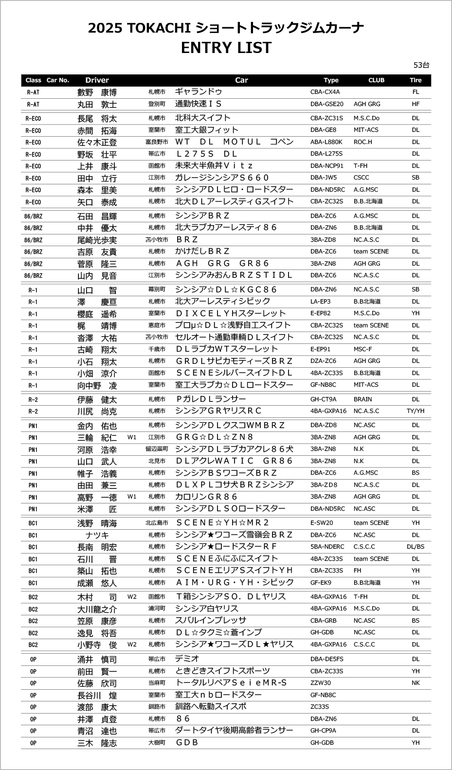 2 | 5/18 | オートテスト2025 inノーザンアークリゾート | N.K | 北見 | クローズド(F) | ![]() |